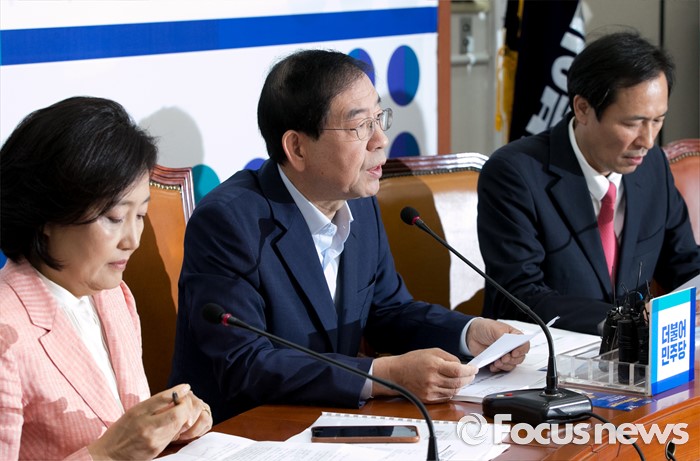 (서울=포커스뉴스) 26일 오전 서울 여의도 국회에서 열린 더불어민주당 시도지사 정책협의회에 참석한 참좋은지방정부위원회 공동위원장인 박원순 서울시장이 모두발언을 하고 있다.