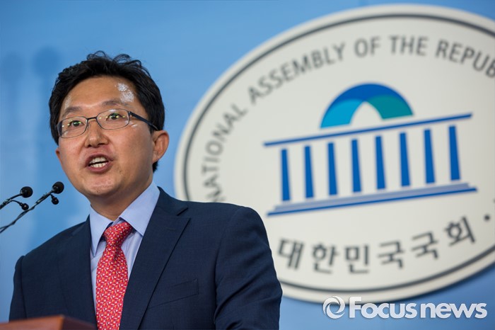 (서울=포커스뉴스) 김용태 새누리당 의원이 27일 오전 서울 여의도 국회에서 오는 8월 9일에 열리는 차기 전당대회 당 대표 경선 출마를 선언 하고 있다.