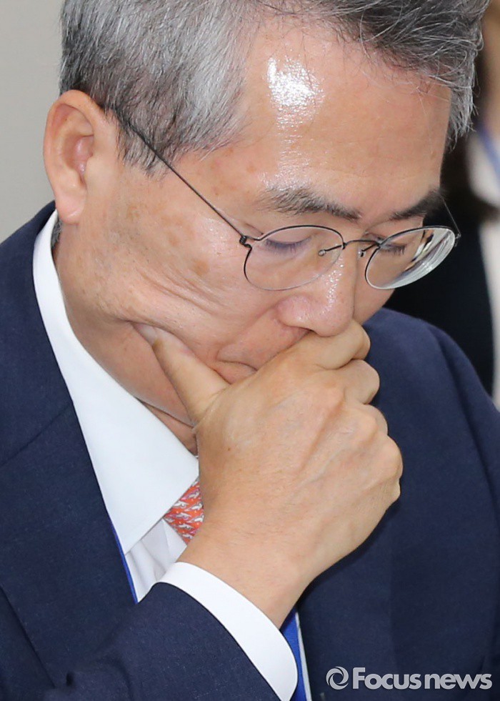 (세종=포커스뉴스) 박준성 최저임금위원회 위원장이 27일 오후 세종시 정부세종청사 고용노동부 전원회의실에서 열린 최저임금위원회 제6차 전원회의에서 생각에 잠겨 있다.