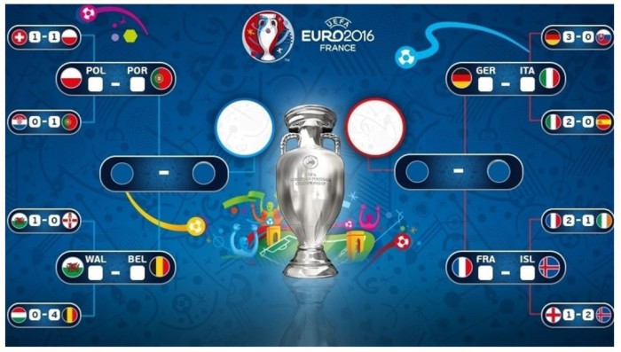 (서울=포커스뉴스) 잉글랜드와 아이슬란드의 28일(한국시간) 열린 16강 경기를 끝으로 유로 2016 8강 대진이 확정됐다. 웨일스와 벨기에, 독일과 이탈리아의 빅매치가 정해졌다. 폴란드는 포르투갈과 만난다.