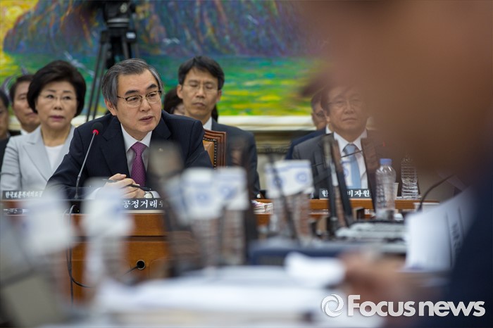 (서울=포커스뉴스) 정재찬 공정거래위원회 위원장이 28일 오후 서울 여의도 국회에서 열린 정무위원회에 참석해 질의응답 하고 있다.