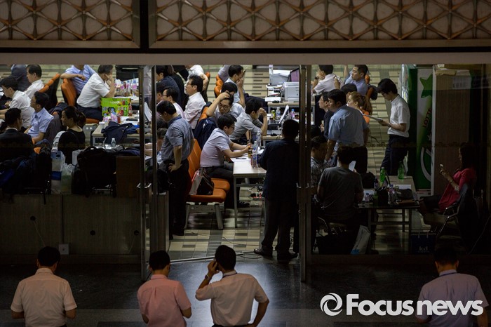 (서울=포커스뉴스) 28일 오후 서울 여의도 국회에서 상임위원회에 업무 지원을 나선 관계기관 공무원들이 전체회의가 열리는 회의실 밖을 지키며 업무를 보고 있다.