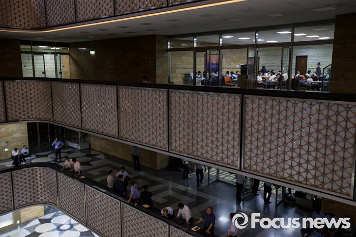 (서울=포커스뉴스) 28일 오후 서울 여의도 국회에서 상임위원회에 업무 지원을 나선 관계기관 공무원들이 전체회의가 열리는 회의실 밖을 지키며 업무를 보고 있다.
