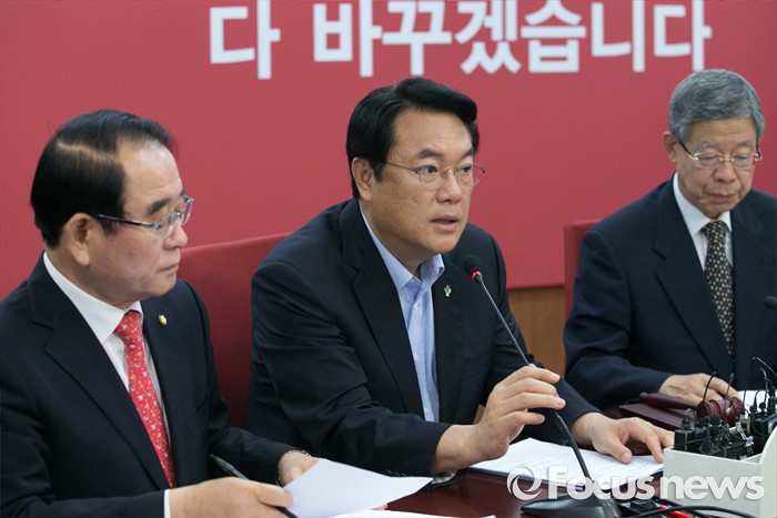 (서울=포커스뉴스) 정진석 새누리당 원내대표가 29일 오전 서울 여의도 당사에서 열린 혁신비대위원회의에 참석해 모두발언을 하고 있다.