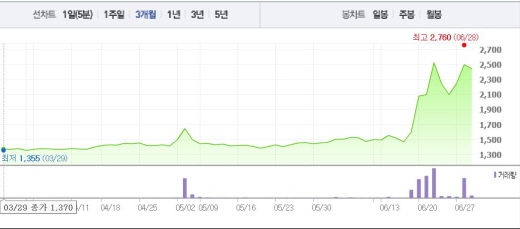 양측 회사는 한국거래소의 주가급등 관련 조회공시 요구에 “별도로 공시할 중요한 정보가 없다”고 답변했다.대아티아이 주가흐름<사진출처=네이버 캡쳐>