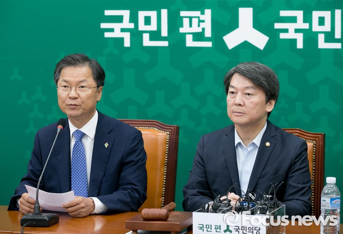 (서울=포커스뉴스) 29일 오전 서울 여의도 국회에서 열린 국민의당 최고위원회의에 참석한 천정배 공동대표가 리베이트 수수 의혹 사건과 관련 입장을 전하고 있다. 오른쪽은 안철수 상임공동대표.