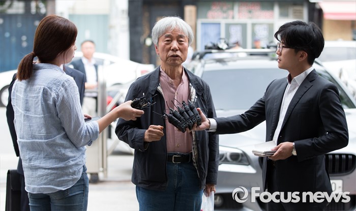 (서울=포커스뉴스) '위작 논란'에 휩싸인 현대미술가 이우환(80) 화백이 29일 오후 서울지방경찰청 지능범죄수사대로 최종 입장을 밝히기 위해 출석하고 있다.