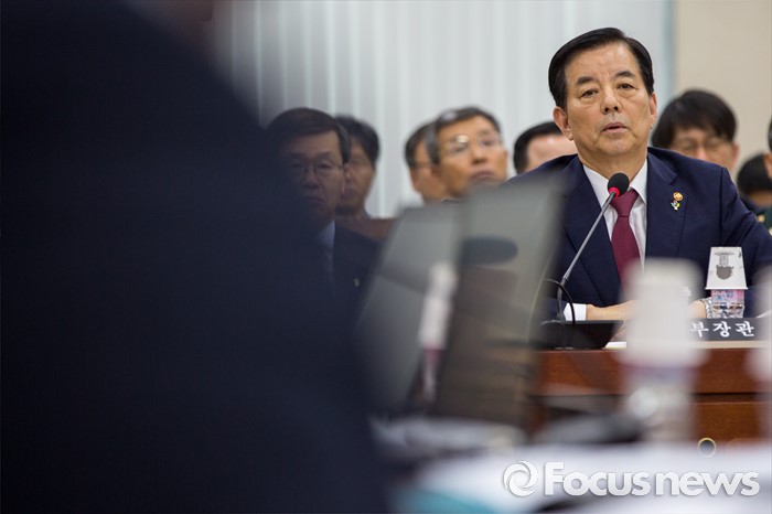 (서울=포커스뉴스) 한민구 국방부 장관이 29일 오후 서울 여의도 국회에서 열린 '국방위원회 전체회의'에 참석해 질의응답 하고 있다.