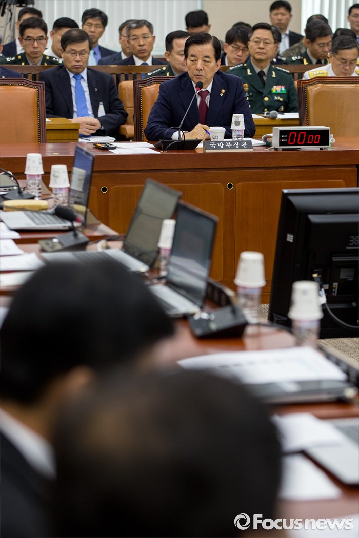 (서울=포커스뉴스) 한민구 국방부 장관이 29일 오후 서울 여의도 국회에서 열린 '국방위원회 전체회의'에 참석해 질의응답 하고 있다.