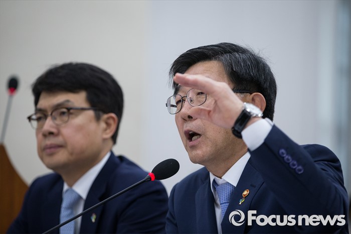 (서울=포커스뉴스) 이기권 고용노동부 장관이 29일 오후 서울 여의도 국회에서 열린 환경노동위원회 전체회의에서 한정애 더불어민주당 의원이 비판한 '성과연봉제 웹툰'에 대해 답하고 있다.