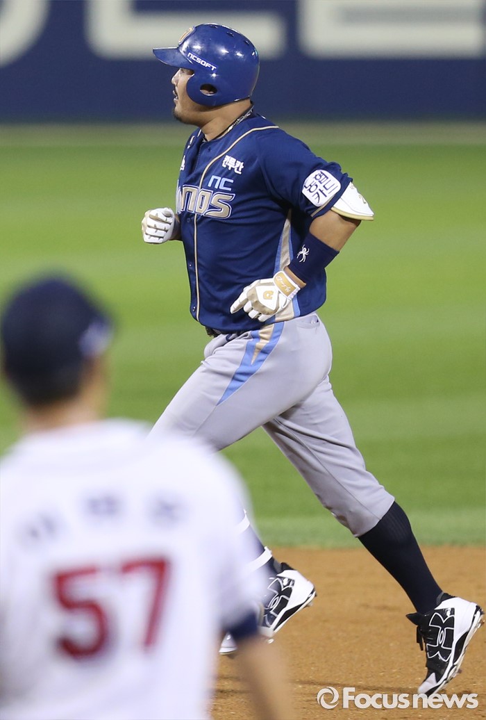 (서울=포커스뉴스) 29일 서울 잠실구장에서 열린 2016 프로야구 NC-두산 경기 6회초 1사후 NC 이호준이 중월 3점 홈런을 치고 그라운드를 돌고 있다.