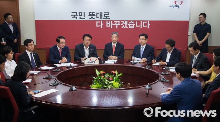 (서울=포커스뉴스) 김희옥 새누리당 혁신비대위원장과 정진석 원내대표를 비롯한 비대위원들이 30일 오전 서울 여의도 당사에서 혁신비상대책위원회의를 하고 있다.