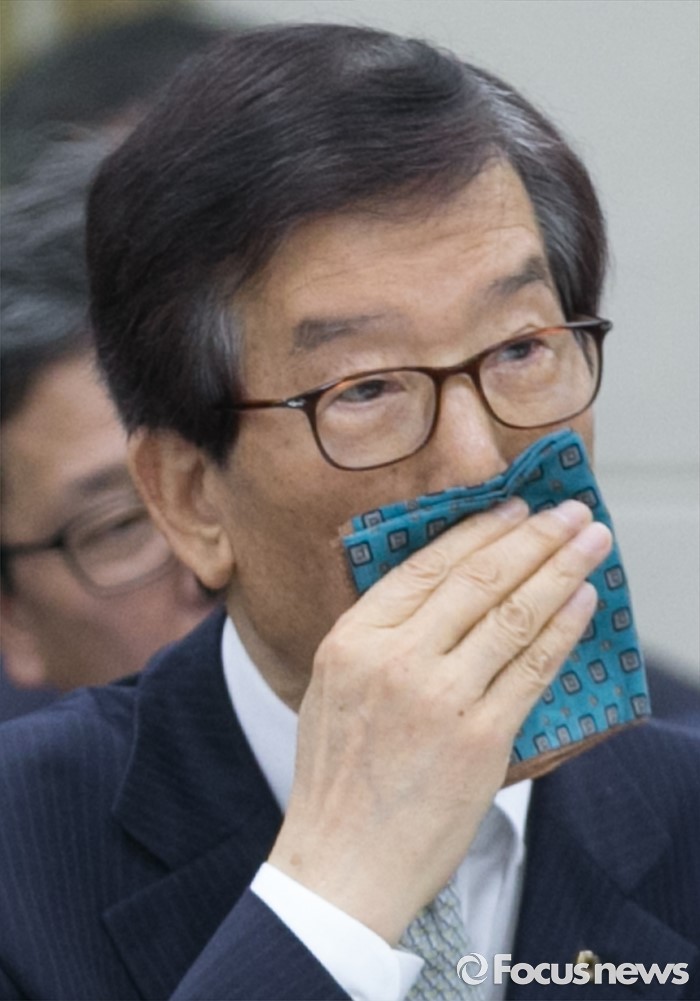 (서울=포커스뉴스) 30일 오전 서울 여의도 국회에서 열린 정무위원회 전체회의에 참석한 이동걸 한국산업은행 회장이 얼굴을 닦고 있다.