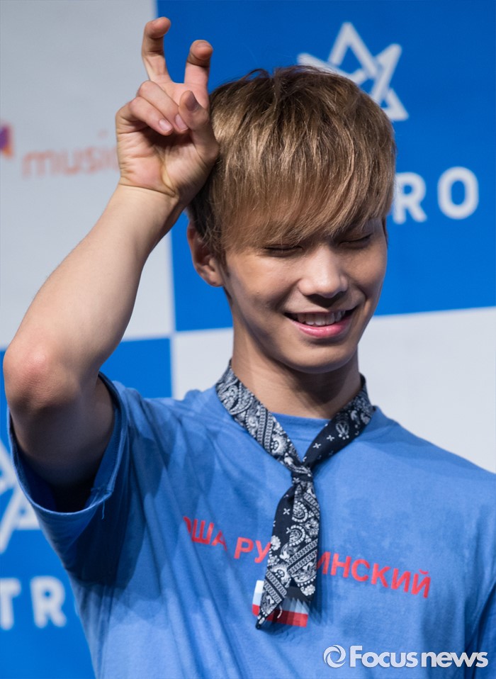 (서울=포커스뉴스) 30일 오후 서울 강남구 일지아트홀에서 열린 아이돌 그룹 아스트로의 두번째 미니앨범 'Summer Vibes' 발표 쇼케이스에 참여한 멤버 라키가 포토타임을 갖고 있다.