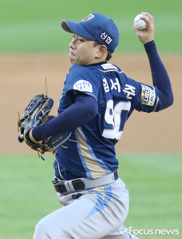 (서울=포커스뉴스) 30일 서울 잠실구장에서 열린 2016 프로야구 NC-두산 경기에서 1회말 NC 선발투수 임서준이 투구하고 있다.