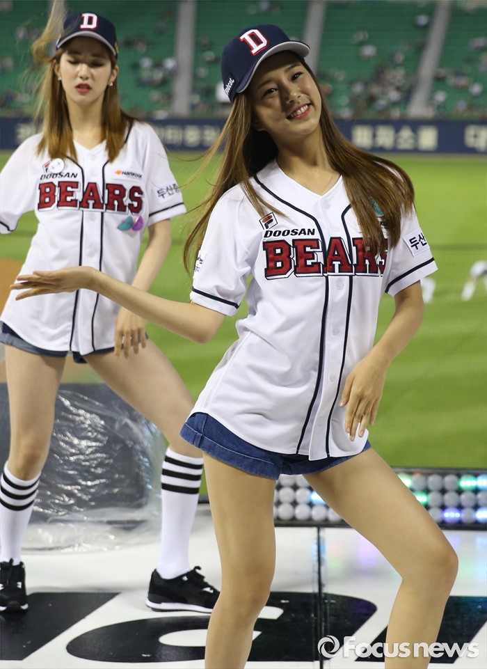 (서울=포커스뉴스) 30일 서울 잠실구장에서 열린 2016 프로야구 NC-두산 경기에서 인기 걸그룹 '라붐'이 경기전 시구에 이어 클리닝타임에 응원단상에 올라 귀엽고 깜찍한 율동으로 관중들에게 한 여름의 더위를 식혀주는 깜짝 공연을 펼쳤다.