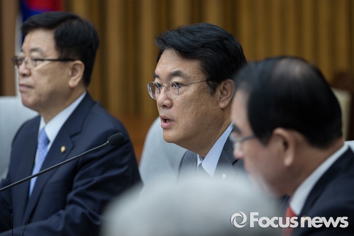 (서울=포커스뉴스) 정진석 새누리당 원내대표가 1일 오전 서울 여의도 국회에서 원내대책회의에서 발언하고 있다.