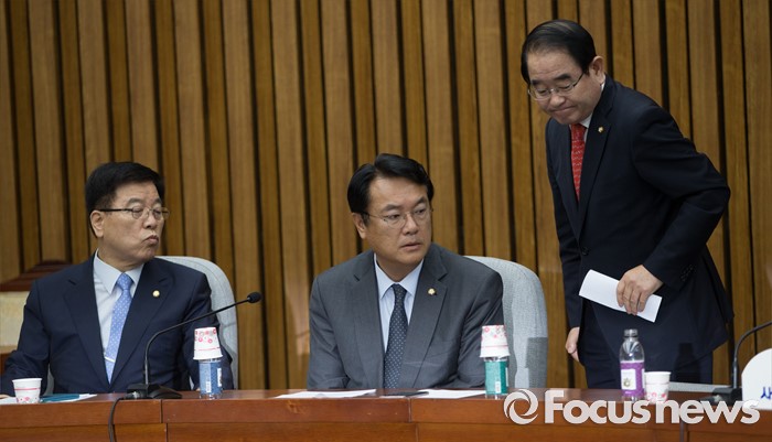 (서울=포커스뉴스) 박명재 새누리당 사무총장이 1일 오전 서울 여의도 국회에서 열린 원내대책회의 중 자리를 나서고 있다.