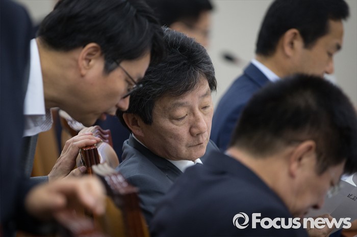(서울=포커스뉴스) 유승민 새누리당 의원이 1일 오전 서울 여의도 국회에서 열린 기획재정위원회 전체회의에 출석해 한 관계자로부터 귀엣말을 듣고 있다.
