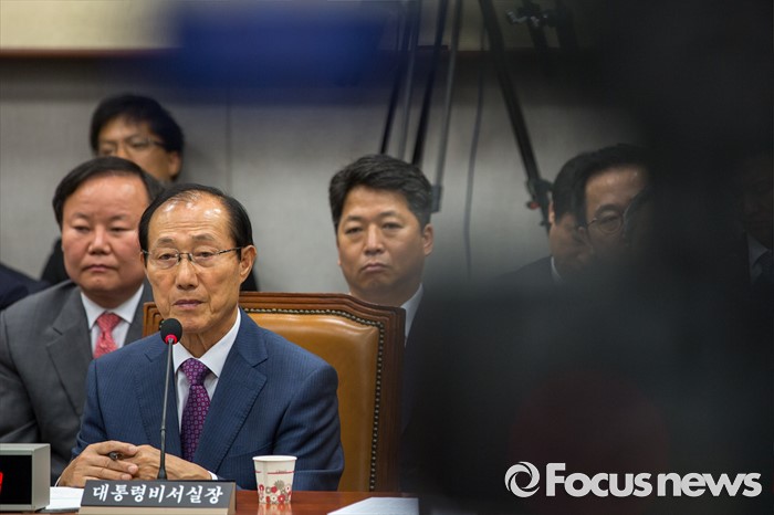 (서울=포커스뉴스) 이원종 대통령비서실장이 1일 오전 서울 여의도 국회에서 열린 '운영위원회 전체회의'에 참석해 질의응답 하고 있다.