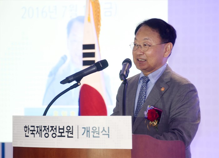 (서울=포커스뉴스) 유일호 부총리 겸 기획재정부 장관이 1일 서울 메트로타워에서 열린 한국재정정보원 개원식에 참석, 축사를 하고 있다. <사진제공=기획재정부>