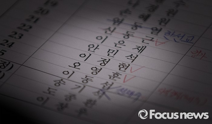 (서울=포커스뉴스) 세월호 참사 당시 이정현 청와대 홍보수석과 김시곤 KBS 보도국장의 전화 통화 녹취록이 공개되며 보도통제 등 논란이 가열되고 있는 1일 오후 서울 여의도 국회에서 열린 교육문화체육관광위원회 전체회의에 불참한 이정현 새누리당 의원의 명단이 보이고 있다.