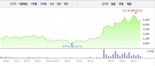 JYP엔터테인먼트는 1일 코스닥 시장에서 전거래일보다 3.27%(200원) 상승한 6320원에 거래를 마쳤다. JYP엔터는 2거래일 연속 하락세를 기록했지만 이날 반등에 성공했다.