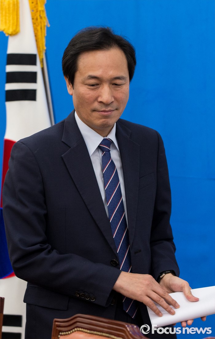(서울=포커스뉴스) 우상호 더불어민주당 원내대표가 취임 2개월을 맞아 3일 오전 서울 여의도 국회에서 가진 기자간담회에 참석하고 있다.
