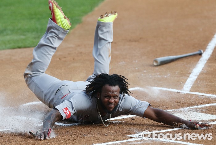 (서울=포커스뉴스) 3일 서울 잠실구장에서 열린 2016 프로야구 SK-LG 경기 1회초 2사 2루에서 SK 정의윤의 우전 적시 안타때 2루주자 고메즈가 홈까지 뛰어 슬라이딩하며 세이프되고 있다.