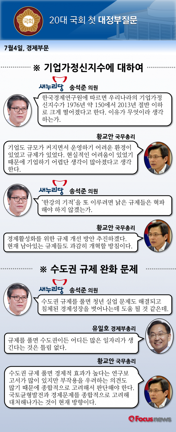 다음은 새누리당 송석준 의원과 황교안 국무총리·유일호 경제부총리의 질의응답 내용이다.