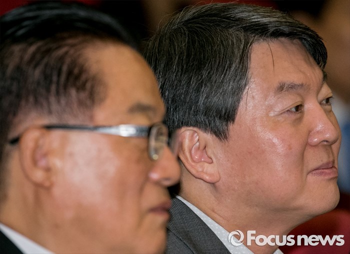 (서울=포커스뉴스) 5일 오전 서울 여의도 국회 의원회관에서 열린 국민의당 성희롱 예방교육에 참석한 박지원(왼쪽) 비대위원장, 안철수 전 대표 등 의원들이 문강분 행복한일연구소 대표의 강의를 듣고 있다.