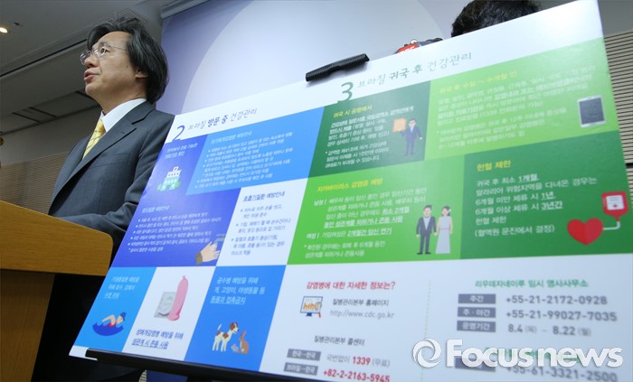 (세종=포커스뉴스) 정기석 질병관리본부장이 5일 오전 세종시 정부세종청사 보건복지부 브리핑룸에서 브리질 리우올림픽 감염병 대응 종합계획을 발표하고 있다.