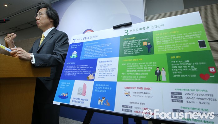 (세종=포커스뉴스) 정기석 질병관리본부장이 5일 오전 세종시 정부세종청사 보건복지부 브리핑룸에서 브리질 리우올림픽 감염병 대응 종합계획을 발표하고 있다.