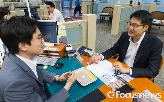 (서울=포커스뉴스) 5일 오후 서울 중구 우리은행 본점에서 은행 고객이 사잇돌 중금리 대출 상담을 받고 있다.