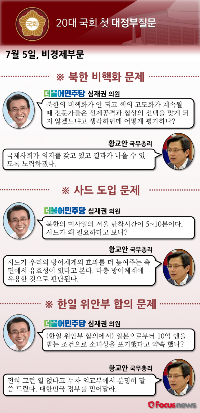 다음은 더불어민주당 심재권 의원과 황교안 국무총리의 질의응답 내용이다.