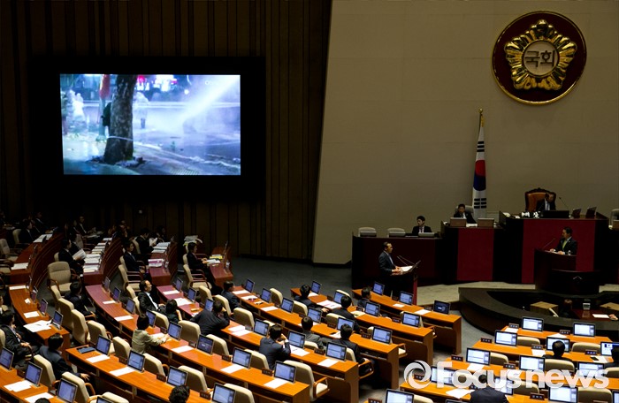 (서울=포커스뉴스) 5일 오후 서울 여의도 국회에서 열린 343회 국회(임시회) 7차 본회의, 정치·외교·통일·안보·교육·사회·문화에 관한 질문에 참석한 이용주 국민의당 의원이 홍윤식 행정자치부 장관에게 백남기 농민 사건 관련 질문하고 있다.