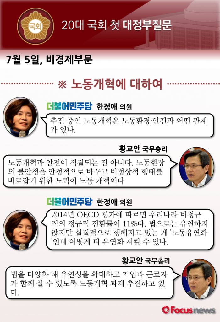 (서울=포커스뉴스) 20대 국회 첫 대정부 질문 이튿날 일정이 5일 오전 10시 국회에서 시작됐다. 4일에는 경제부문을, 5일은 비경제부문을 집중적으로 다뤘다.