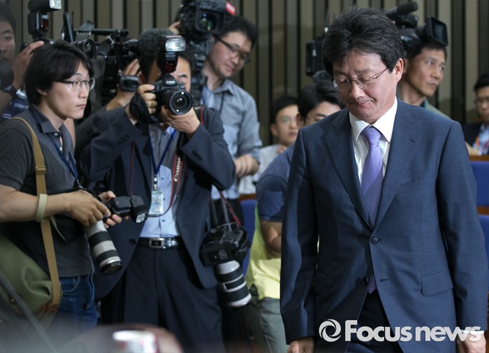 (서울=포커스뉴스) 6일 오후 서울 여의도 국회에서 열린 새누리당 의원총회에 참석한 유승민 의원이 복당 인사말을 위해 단상으로 향하고 있다.