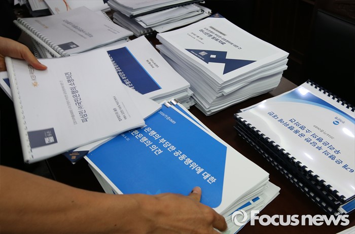 (세종=포커스뉴스) 지난달 22일 세종시 정부세종청사 공정거래위원회 심판정에서 열린 6개 시중은행(국민·농협·신한·우리·하나·SC은행)의 양도성예금증서(CD)금리 담합의혹에 대한 심의에 앞서 공정위 직원들이 관련 자료를 정리하고 있다. 6일 공정위 전원회의는 CD금리 담합과 관련해 법 위반 여부를 결정하기 어렵다고 판단, 심의절차를 종료 한다고 밝혔다.