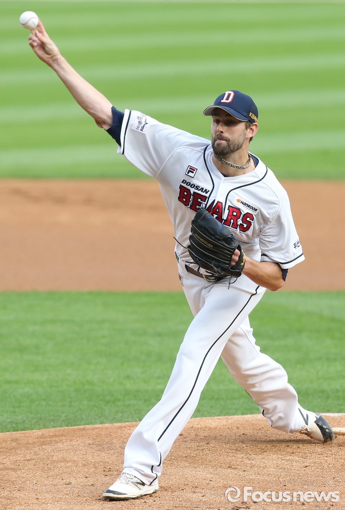 (서울=포커스뉴스) 6일 서울 잠실구장에서 열린 2016 프로야구 넥센-두산 경기에서 1회초 두산 선발투수 니퍼트가 투구하고 있다.