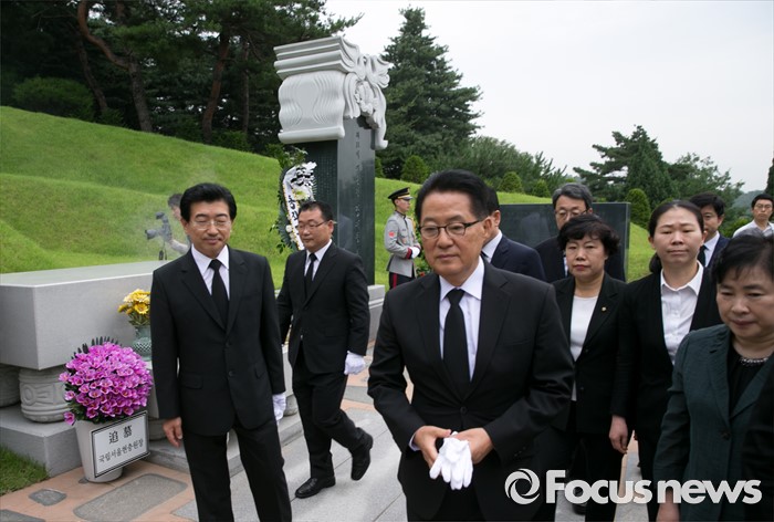 DJ묘소 참배 마치고 나서는 박지원