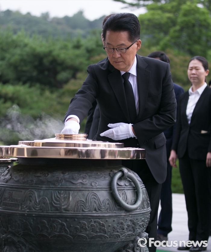 (서울=포커스뉴스) 박지원 국민의당 비상대책위원장과 비대위원 등이 7일 오전 동작구 국립서울현충원을 방문해 현충탑 참배를 하고 있다.