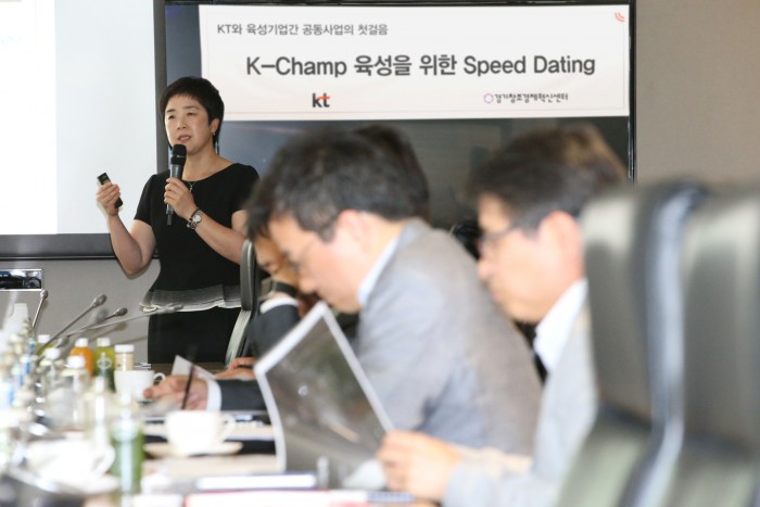 스피드데이팅은 스타트업이 아이디어와 기술을 제안하면 KT 임원이 이를 검토해 사업화 추진을 위한 재원 투입과 마케팅 지원 등을 현장에서 즉시 결정하는 의사결정 시스템이다.