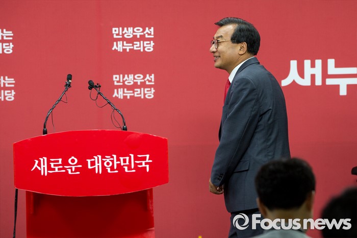 (서울=포커스뉴스) 이정현 새누리당 의원이 7일 오전 서울 여의도 새누리당사에서 오는 8월 당 대표를 선출하는 전당대회에 후보로 출마하겠다는 입장을 밝히기 위해 기자회견장으로 들어서고 있다.