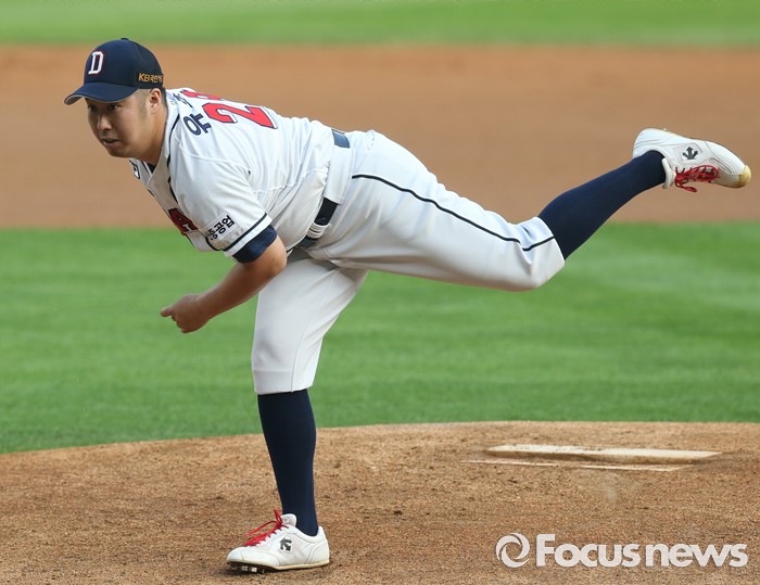 (서울=포커스뉴스) 6일 서울 잠실구장에서 열린 2016 프로야구 넥센-두산 경기에서 1회초 두산 선발투수 유희관이 투구하고 있다.