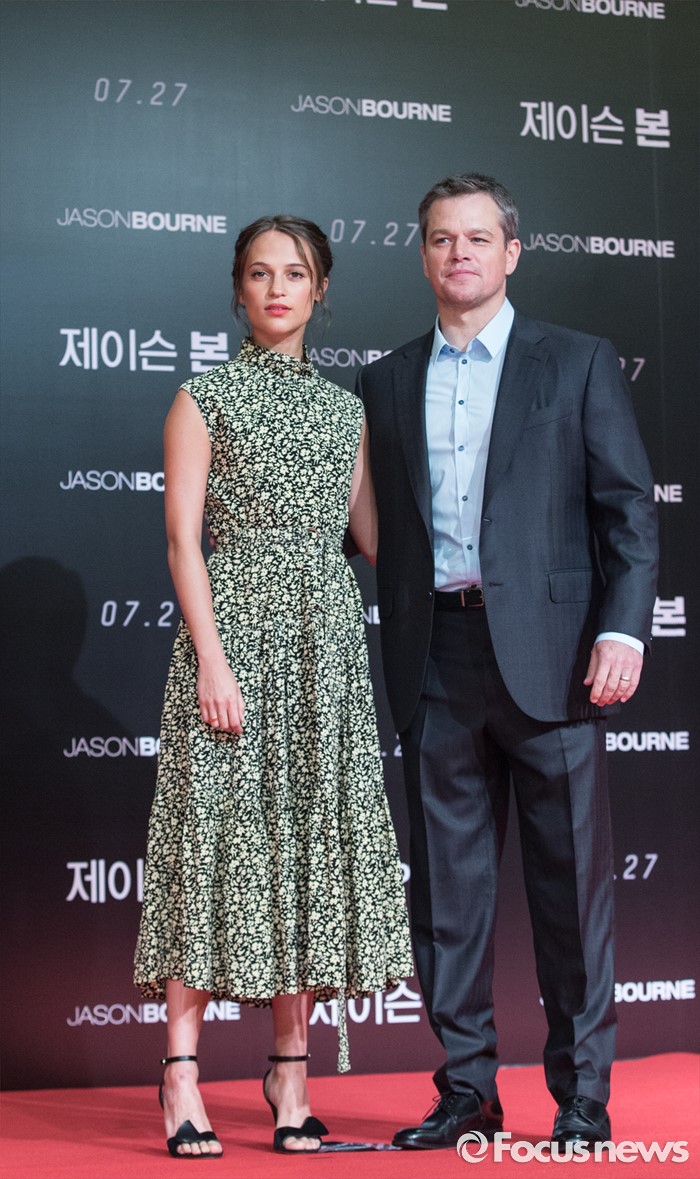 6일 오후 서울 종로구 포시즌스호텔에서 맷 데이먼과 알리시아 비칸데르가 참석한 가운데 영화 '제이슨 본'의 아시아 프리미어 기자회견이 열렸다. 알리시아 비칸데르는 '제이슨 본'에서 정보기관에서 업무를 수행하는 헤더리 리 역을 맡았다.