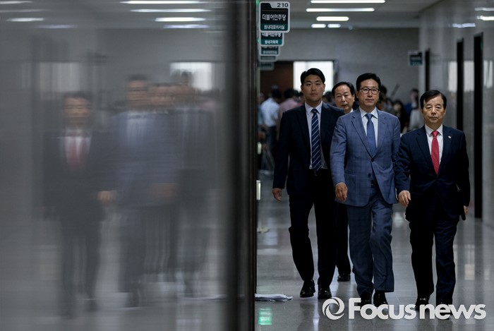 또 "한반도 전쟁억지에 대한 미국의 보다 분명하고 구체적인 입장표명이 있어야 하고, 정부는 이후 발생할 수 있는 모든 국내외적 반발과 우려를 불식할 수 있는 대책 마련에 총력을 기울여야 한다"며 "더민주는 국방위원회 소집을 요구한다. 내주초쯤 국방위원회에서 이런 부분들을 엄하게 추궁하고 따질 것"이라고 밝혔다.(서울=포커스뉴스) 한민구 국방부 장관이 8일 오전 서울 여의도 국회를 방문해 사드배치 등과 관련 국민의당 지도부와 면담을 마친 뒤 더불어민주당 지도부와 면담을 위해 이동하고 있다. 2016.07.08 박동욱 기자