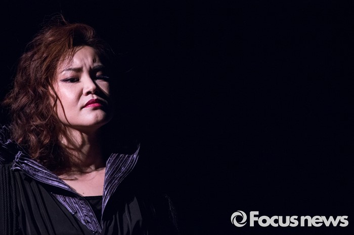 (서울=포커스뉴스) 8일 오후 서울 종로구 동숭아트센터에서 열린 오페라연극 '맥베스' 프레스콜에 참여한 소프라노 이보영이 주오장면을 시연하고 있다.