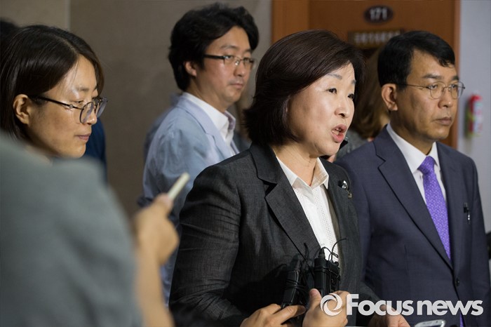(서울=포커스뉴스) 10일 오전 서울 영등포구 국회에서 심상정 정의당 삼임대표가 사드 배치 관련 긴급기자회견을 마친 뒤 브리핑실 밖에서 취재진의 대답하고 있다.
