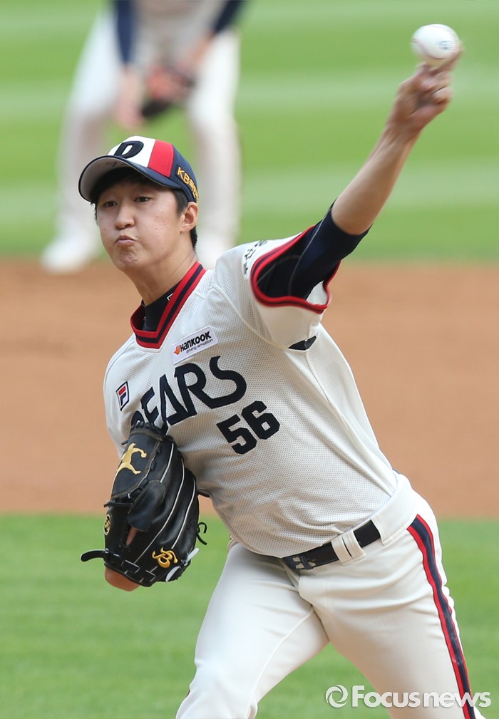(서울=포커스뉴스) 10일 서울 잠실구장에서 열린 2016 프로야구 KIA-두산 경기에서 1회초 두산 선발투수 허준혁이 투구하고 있다.